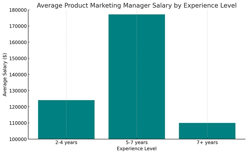 As a Product Marketing Manager gains experience, their salary tends to increase, from around $124,116/year for 2-4 years of experience to approximately $177,188/year for 5-7 years of experience.